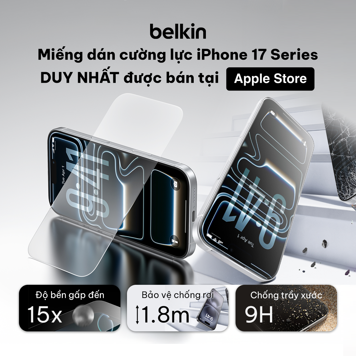 Belkin genuine screen protectors are currently available through authorized retailers and distributors in Vietnam, offering a safe, refined, and long-lasting protection solution for iPhone 17 Series users.