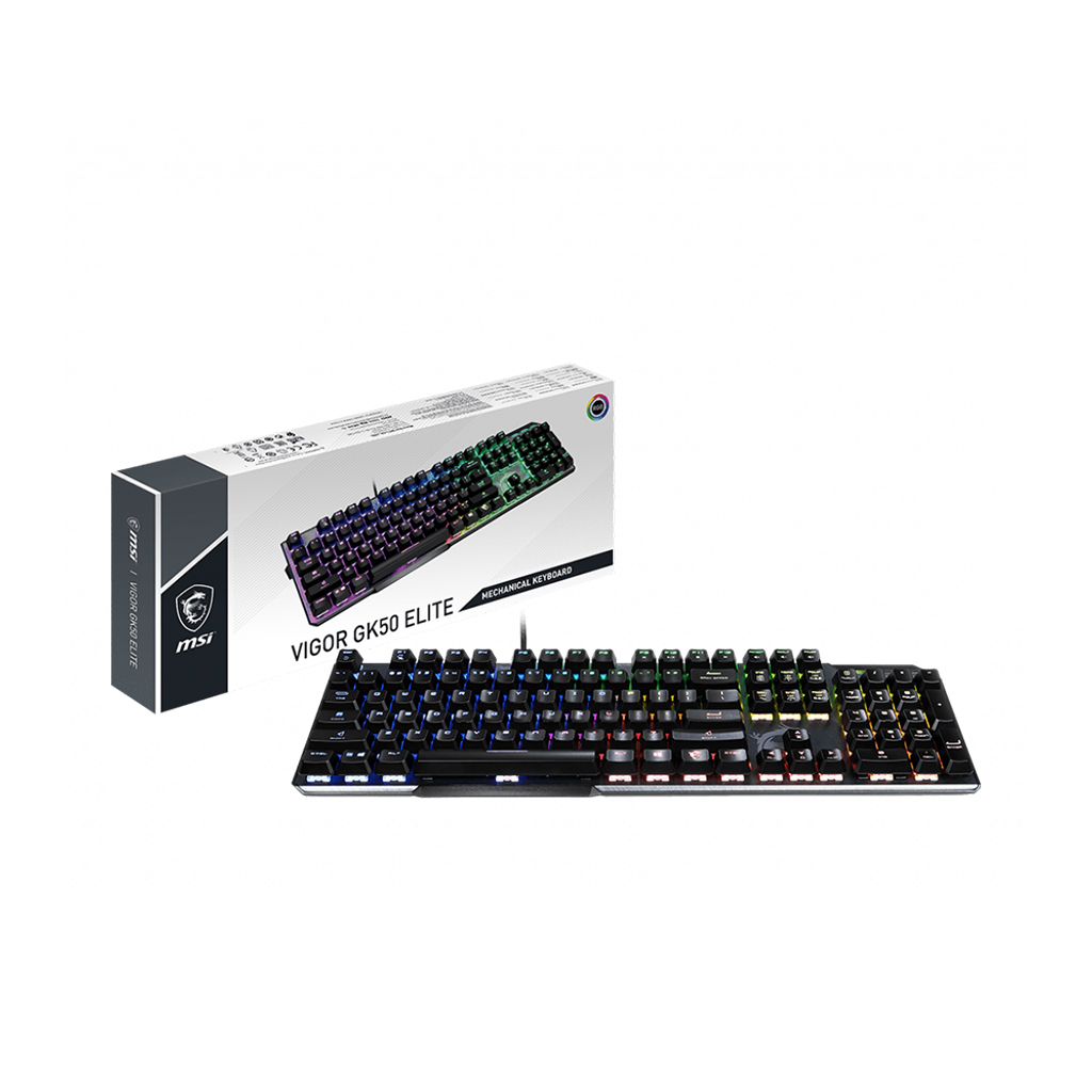 The VIGOR GK50 ELITE comes with millions of colors and stunning per-key RGB lighting and different effects. The customized function allows you to create various and unique lighting effects via the MSI Dragon Center software.